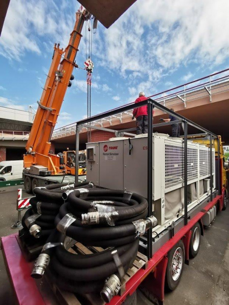 Mobilní chladící jednotka o výkonu 500 kW. Posílení chladicího výkonu v letních měsících ve Fakultní nemocnici Ostrava.
