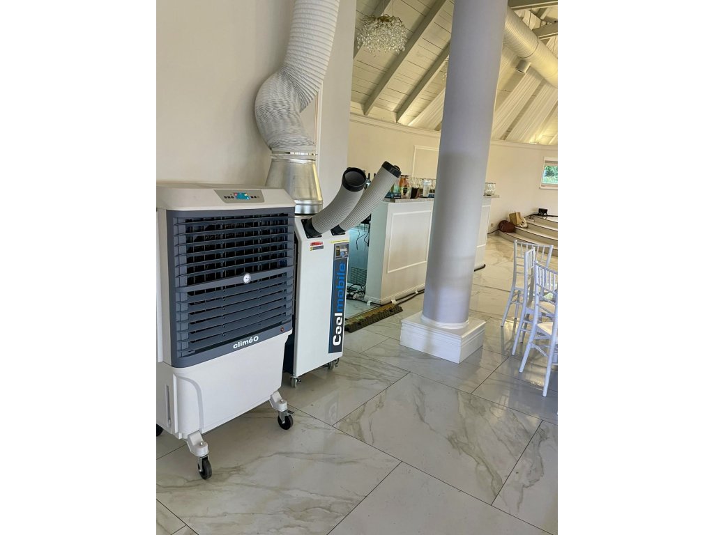 Průmyslový adiabatický chladič MC08 je kompaktní, mobilní jednotka s otočnými kolečky a integrovanou nádrží na vodu pro až 7 hodin nepřetržitého autonomního provozu na plný výkon.