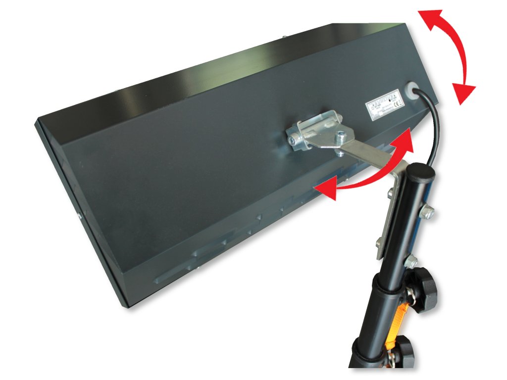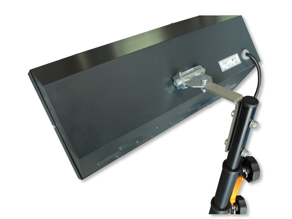 Určený pro domácí, komerční i průmyslové využití včetně venkovních prostorů (krytí IP23). Moderní konstrukce se zvětšenou plochou reflektoru a šikmými bočními odrazovými plochami zaručuje maximální přenos tepelné energie do prostoru. Reflektor je vyroben z vysoce leštěného hliníkového plechu, plášť zářiče je z plechu ocelového s povrchovou úpravou práškovými barvami (komaxit). Elektrický infračervený zářič je vybaven montážní konzolou, která umožňuje náklon zářiče 45 – 90°, a flexo kabelem o délce 3 m. Barevné provedení: grafitová.