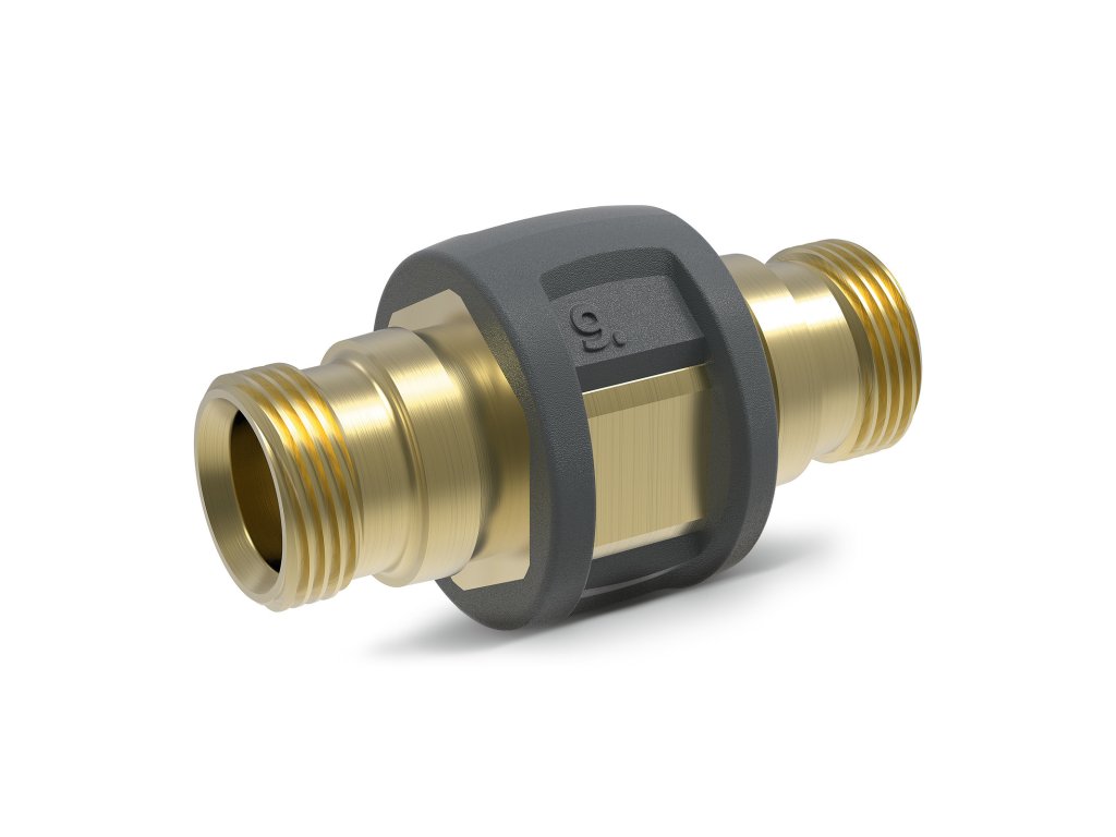 Mosazný dvojitý adaptér pro připojení a prodloužení vysokotlakých hadic HD/HDS strojů. S gumovou ochranou. Připojení: 2x EASY!Lock.