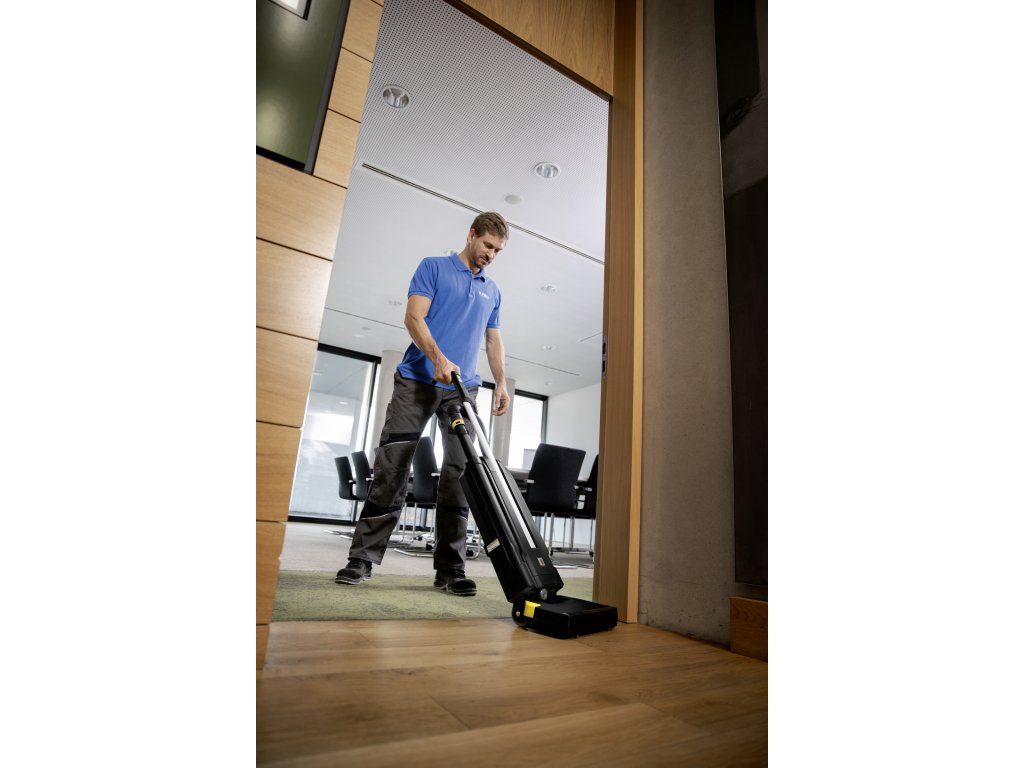 K 90. výročí Kärcher: CV 30/2 Bp Limitovaná edice v černé barvě je první bateriový upright kartáčový vysavač pro profesionální čištění všech koberců a tvrdých povrchů. Dokonale se přizpůsobí podlahové krytině díky automatické detekci podlahy. Výkonný kartáč důkladně vyčistí vlákna textilních podlah a viditelně je narovná. Bateriový upright kartáčový vysavač díky své výjimečně nízké výšce podjezdu bez námahy uklízí také pod postelemi a stoly. Další výhoda: rychlá a hygienická funkce samočištění. Vlasy nasbírané válcovým kartáčem se prostříhají pomocí nožního spínače a zbytky se pak automaticky vysají. Bateriový kartáčový vysavač má uživatelsky velmi přívětivý design a je vybaven inovativní rukojetí: vypínačem, režimem eco!efficiency a LED displejem zobrazujícím zbývající výdrž baterie. Upozornění: pro tuto verzi je třeba baterii Kärcher Battery Power+ a kompatibilní nabíječku objednat samostatně. Jako volitelný doplněk je k dispozici také ultra účinný filtr HEPA-14. Zvláštností Limitované edice je, že k výročí společnosti je součástí dodávky celkem 11 vliesových filtračních sáčků.
