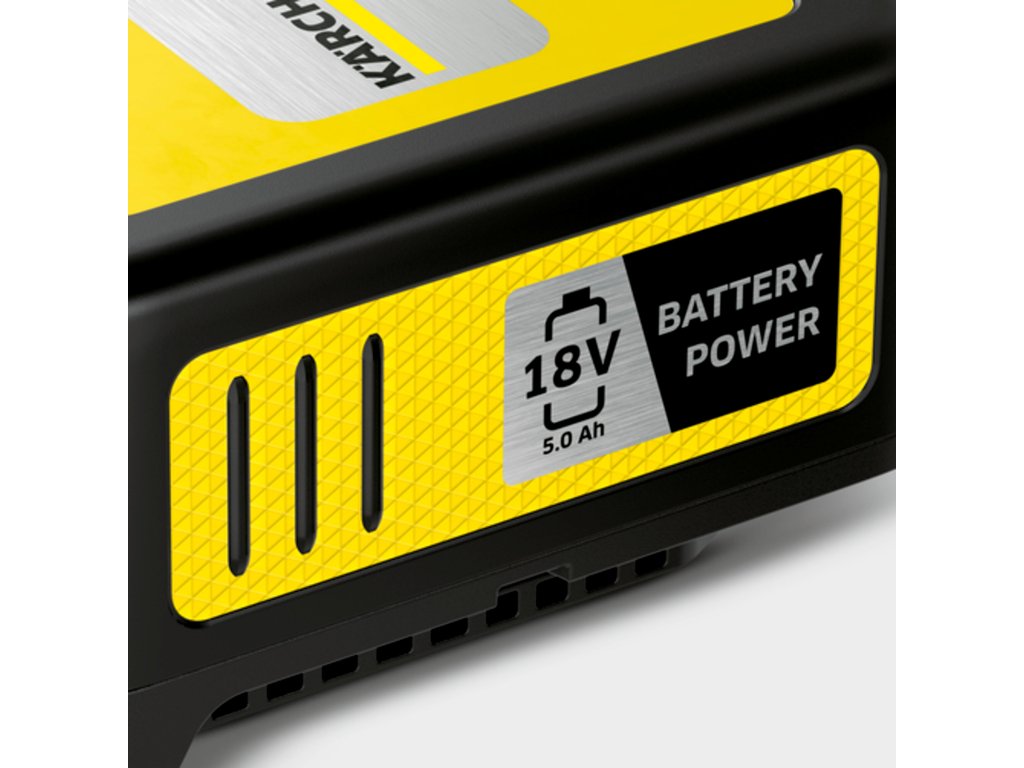 Baterie je vybavena lithium-intovými články a zajišťuje stálý výkon. Zbývající doba provozu, úroveň nabití a kapacita baterie jsou navíc neustále zobrazovány na integrovaném LCD dispelji pomocí inovativní technologii Real Time. Baterie 18 V / 5,0 Ah je vhodná pro použití ve všech zařízeních s bateriovou platformou Kärcher 18 V.