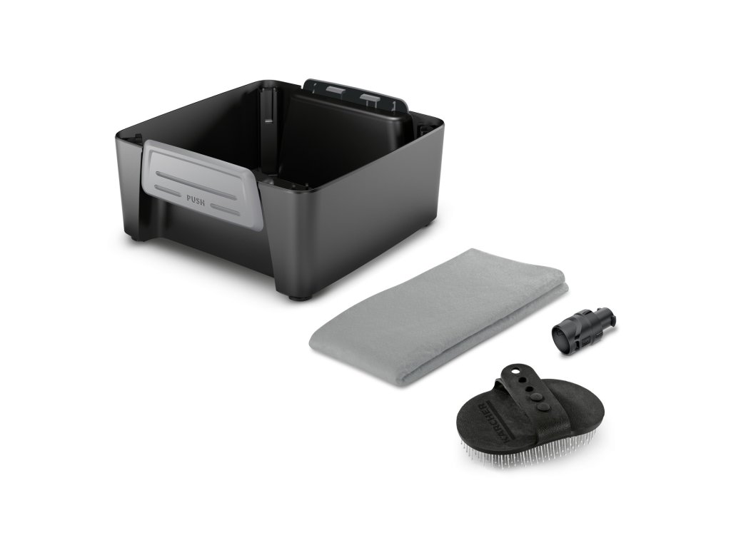 Box s příslušenstvím obsahuje vířivou trysku, která je vhodná pro čištění domácích zvířat jako psů, nebo třeba jen jejich tlap. Kartáčem na čištění srsti snadno vykartáčujete i silně ulpívající nečistoty a kvalitní utěrkou z mikrovláken pak své miláčky osušíte po čištění a mytí. Veškeré dodané příslušenství se vejde do boxu, který je součástí dodávky, a přitom ho lze snadno připevnit na tlakový čistič.