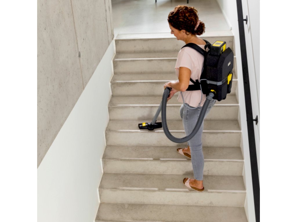 Ultralehký, výkonný a na baterie: Je to první vysavač svého druhu, který se může pochlubit nosnou hmotností pouhých 4,5 kilogramu. Je to díky inovativnímu materiálu EPP, díky kterému je zádový vysavač BVL 3/1 Bp i přes svou nízkou hmotnost mimořádně robustní a odolný. Ať už pro školníky, obchodníky a ženy nebo pro použití v soukromých domácnostech – náročnou práci ušetříte při úklidu míst a schodů: Výkonný batohový vysavač s objemem nádoby 3 litry je perfektním řešením pro úklid ve stísněných prostorách. Zatímco výkonná baterie Kärcher Battery Power zajišťuje dlouhé doby chodu, ergonomický nosný rám zbavuje práci námahy. S praktickým ovládacím panelem na bederním popruhu pro ovládání všech důležitých provozních a doplňkových funkcí je BVL 3/1 Bp extrémně uživatelsky přívětivý a lze jej ovládat bez námahy. Bezkartáčový EC motor je také extrémně odolný proti opotřebení. Kromě běžného příslušenství lze dokoupit také kvalitní HEPA-14 filtr. Baterie a nabíječka baterií nejsou součástí balení.
