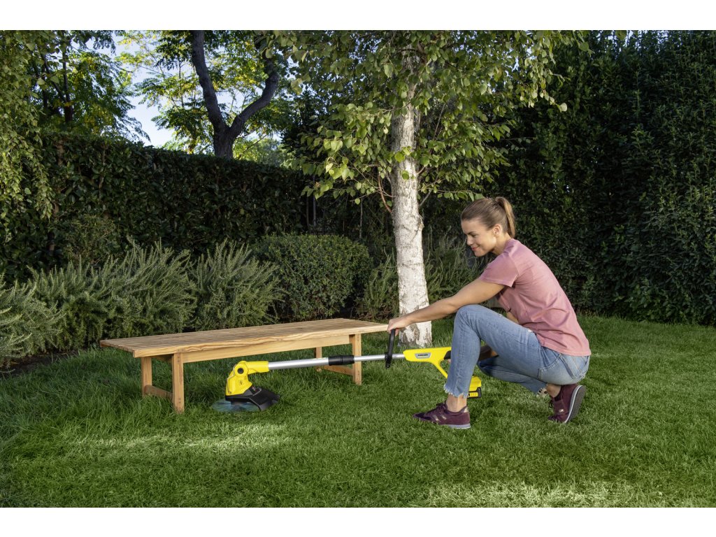 Nevzhledné rohy existují v každé zahradě všude tam, kam se nelze dobře dostat se sekačkou nebo kde stojí v cestě sousední domovní zeď či keř. Pro práce v takových spletitých koutech je zapotřebí malé, flexibilní a každopádně výkonné zařízení: strunová sekačka Kärcher. Ta je vybavená kroucenou sekací strunou, která se pomocí automatického posunu na cívce konstantně nastavuje. Tak je při každém sekání neustále zajištěná perfektní délka struny a zaručené čisté výsledky sekání. Když je struna spotřebovaná, nasadí se jen několika pohyby bez použití nářadí nová cívka. A už je možné pokračovat, až do posledního stébla trávy.