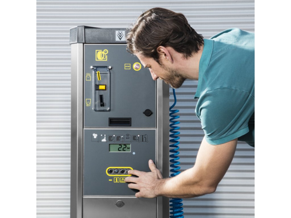 Díky obslužným jednotkám od společnosti Kärcher můžete svým zákazníkům nabídnout další služby a zvýšit atraktivitu vašeho areálu. Air Tower AT pro pohodlnou kontrolu a seřízení správného tlaku v pneumatikách (až 8 barů) má snadno a individuálně programovatelný elektronický přijímač mincí. To umožňuje použití různých mincí a žetonů, stejně jako volně volitelné doby běhu. To umožňuje nepřetržité nastavení až 7 minut běhu a následně přizpůsobení přizpůsobené vašim preferencím a místním podmínkám ve vašem areálu.