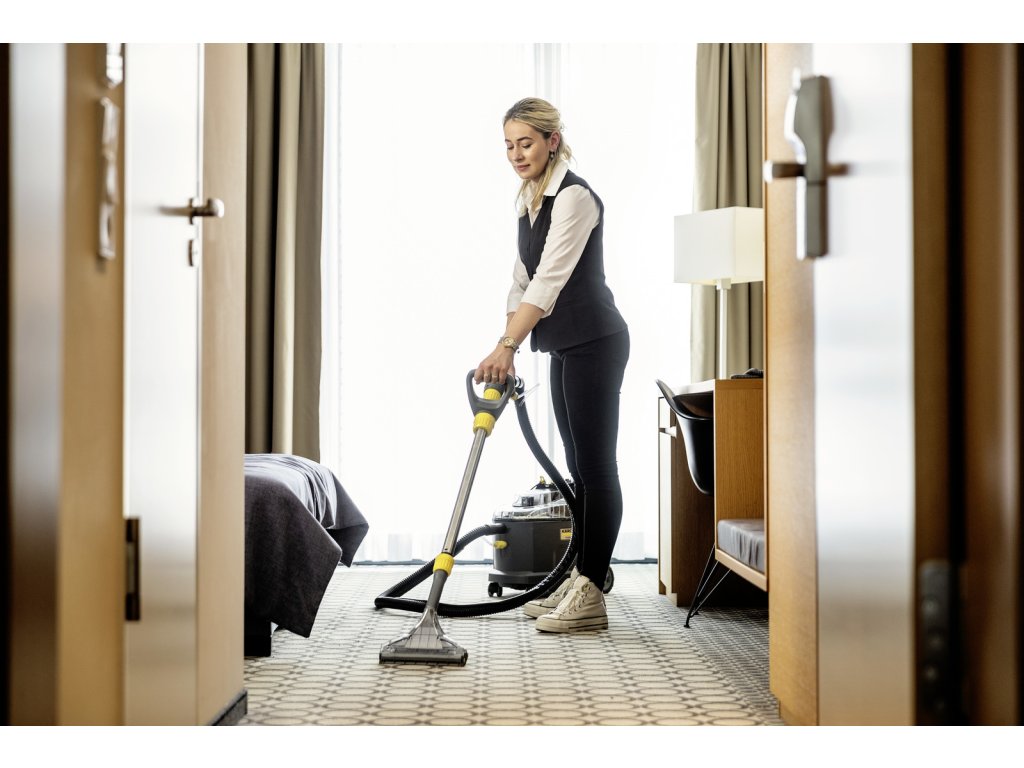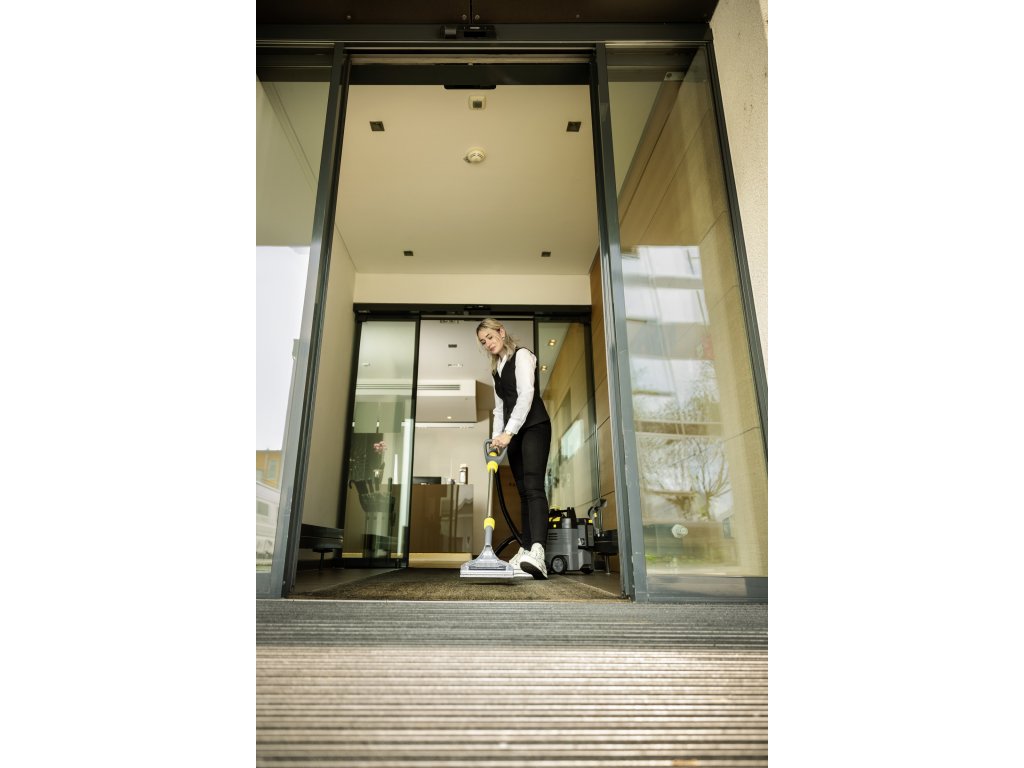 Jedinečný aku extraktor Puzzi 9/1 Bp Adv se postará o důkladný úklid všech textilních povrchů ve vašem hotelu. Osvědčí se také v interiérech vozů i v dalších odvětví jako pohostinství nebo čištění budov. Patří mezi první aku extraktory v profesionální třídě, díky čemuž nabízí maximální flexibilitu. Díky vysokému nástřikovému tlaku vypláchne nečistoty i z hloubky vláken a zanechá koberce i čalounění opravdu čisté. Pracuje efektivně a tiše, takže zbytečně neruší vaše hosty. Při úklidu vám nepřekážejí žádné kabely a přístroj navíc snadno přemístíte i v jedné ruce. Výkon zajišťuje silná 36V baterie s ukazatelem stavu nabití. Extraktor snadno zapnete i nohou, takže při úklidu nenamáháte záda. Špinavá voda odtéká do objemné 7l nádrže, kterou po práci snadno vyjmete a vylijete do umyvadla. Příslušenství navíc jednoduše uchytíte na těle přístroje, takže se zařízení lehce skladuje. Součástí balení je jak hubice na čalounění, tak koberce. Baterie ani rychlonabíječka nejsou součástí dodávky. Pokud již vlastníte jakýkoliv stroj Kärcher o platformě 36 V, můžete baterie kombinovat. Pokud ne, je třeba set baterie s nabíječkou koupit zvlášť nebo si vybrat stejný stroj, který již tento set obsahuje.