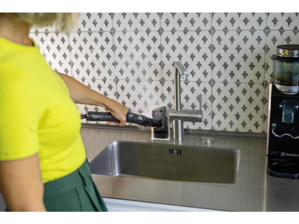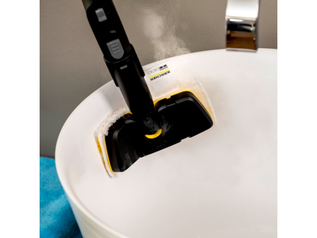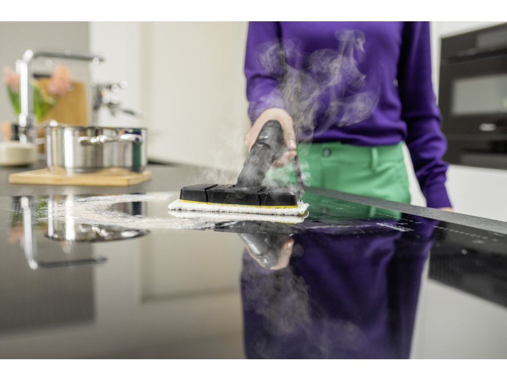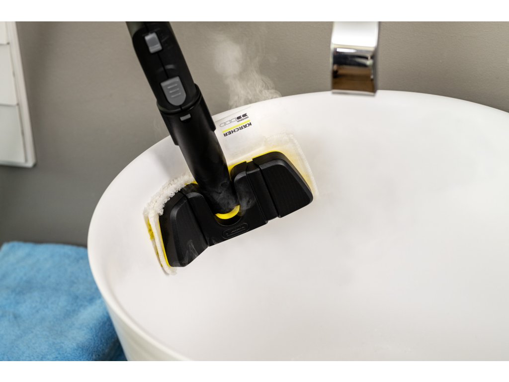 Sada flexibilní ruční trysky se skládá z ruční trysky s flexibilními bočními křídly a vysoce kvalitní utěrky z ultrajemných vláken. Společně zajišťují optimální výsledky čištění na těžko přístupných rovných a zakřivených plochách. Ruční hubice se automaticky přizpůsobí povrchu jemným tlakem. Díky speciální smyčkové struktuře textilní tkaniny zajišťuje hadřík obzvláště účinné zachycení nečistot. Vysoká propustnost páry umožňuje vynikající a hygienické výsledky čištění - i rohy a hrany jsou čisté během okamžiku. Pomocí systému háčku a smyčky lze utěrku snadno a rychle připevnit k ruční hubici. Během práce zůstává utěrka bezpečně umístěna a nemůže sklouznout. Po skončení čištění lze použitý hadřík z ruční hubice sejmout, aniž by musel přijít do kontaktu se špínou.