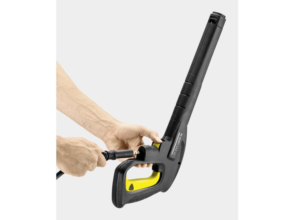 Delší, komfortnější a ergonomičtější: 13 centimetrů navíc přináší u nové pistole G 180 Q se systémem Quick Connect podstatný rozdíl - a vysokotlaké čištění je příjemnější než kdykoli dříve. Ideální i jako náhradní pistole pro všechny vysokotlaké myčky Kärcher K 2 až K 7 s adaptérem Quick Connect bez systému Full Control.