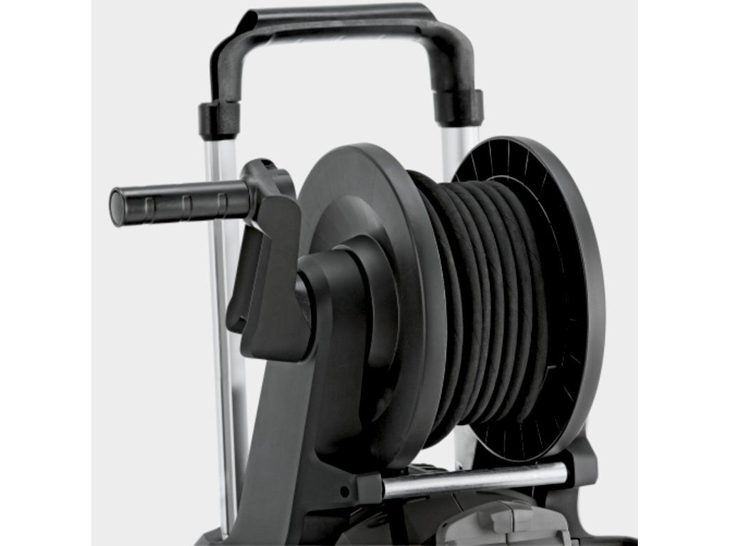 Maximální komfort při manipulaci s vysokotlakou hadicí. Umožňuje krátkou dobu přípravy stroje rychlým navinutím a odvinutím. Zabraňuje nebezpečí zakopnutí a zvyšuje tak bezpečnost provozu.