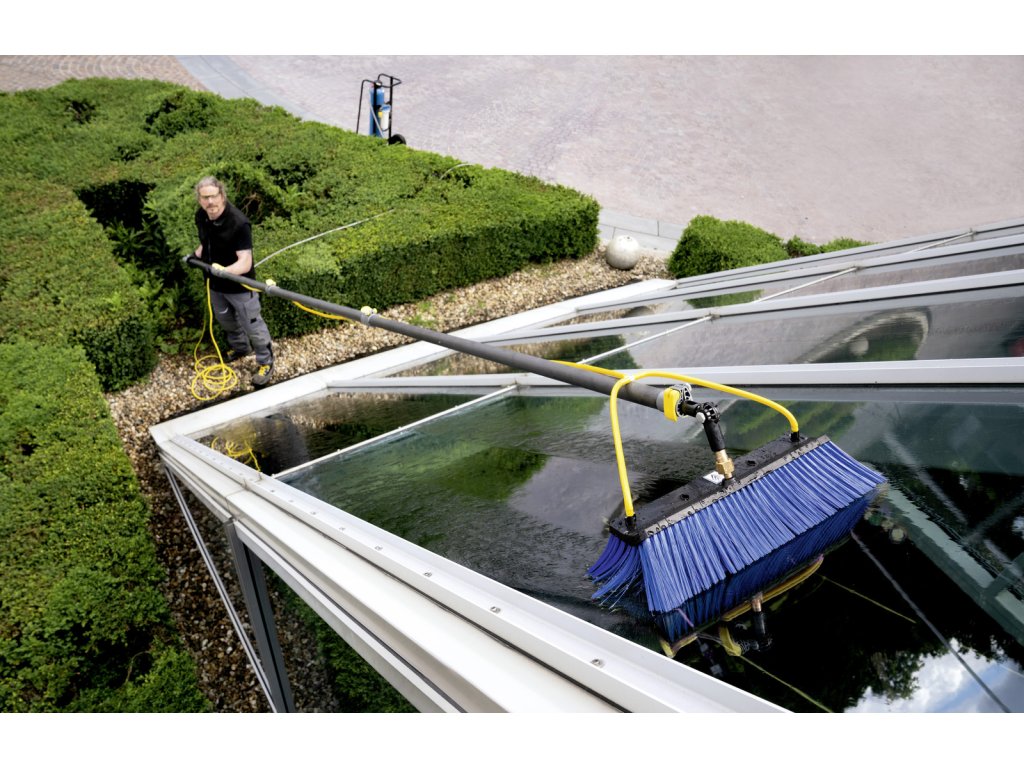 Citlivé povrchy, jako jsou okna nebo solární systémy, vyžadují odpovídající jemný způsob čištění, aby se vyloučilo poškození. Kartáč s měkkými a spojenými štětinami chrání citlivé sklo a přesto důkladně čistí - buď čistou vodou nebo pod vysokým tlakem. Lze jej proto snadno a rychle připojit k vodním teleskopickým nástavcům nebo vysokotlakým nástavcům od společnosti Kärcher. Sada trysek pro čistou vodu nebo 25 ° vysokotlaká tryska zaručují obě aplikace.
