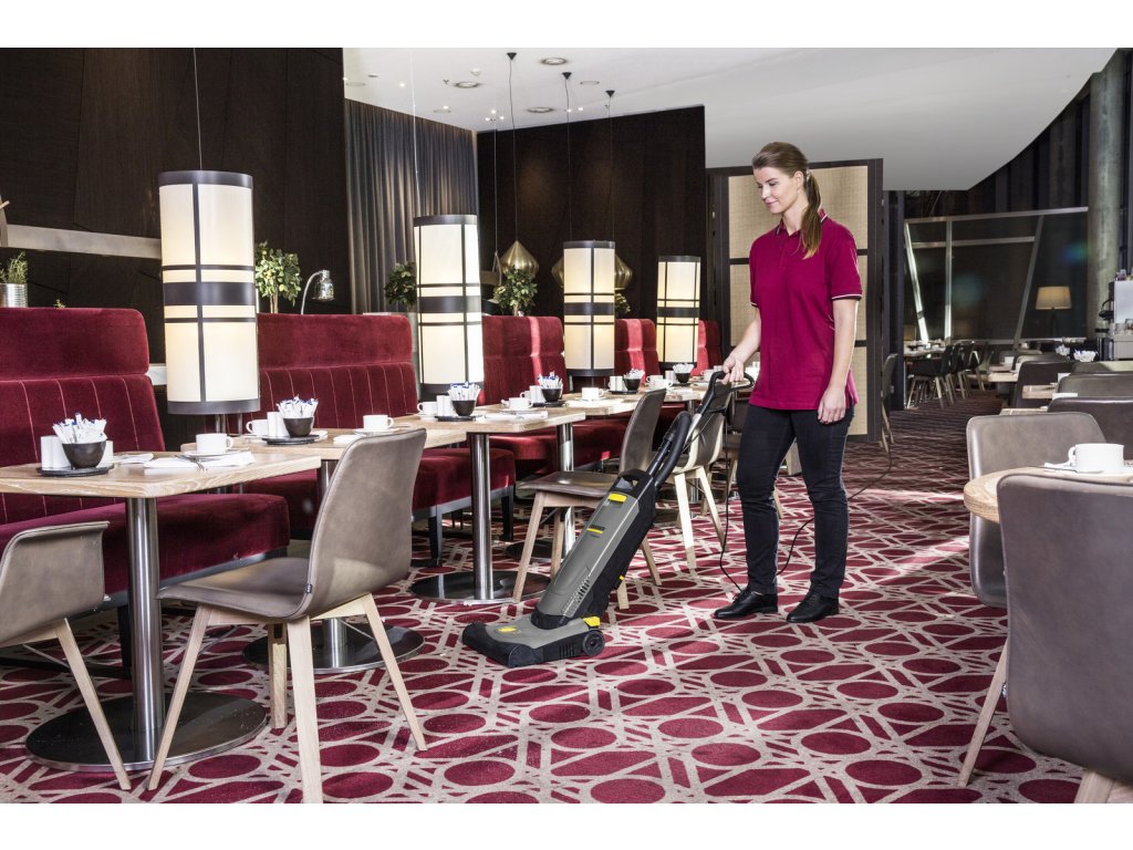 Náš upright kartáčový vysavač CV 38/2 je navržen pro obzvláště vysoké nároky na úklid a je předurčen k efektivnímu úklidu velkých ploch. Ať už v kancelářích nebo showroomech, v hotelech a restauracích, v obchodech nebo ve veřejných budovách: díky mimořádně velké pracovní šířce a mnoha užitečným detailům je čištění koberců rychlé a pohodlné. Ergonomická rukojeť s integrovaným vypínačem perfektně padne do ruky, nízká hmotnost stroje umožňuje práci bez únavy a příslušenství, které je vždy na dosah, zajišťuje perfektní výsledky čištění i na okrajích a ve výklencích. Optická pomůcka pro nastavení kartáče navíc podporuje přesné nastavení kartáče podle výšky vlasu koberce. V případě potřeby servisu inovativní systém rychlé výměny napájecího kabelu a možnost výměny kartáče bez použití nářadí výrazně zkracují běžně potřebný čas a náklady. A v neposlední řadě speciálně vyvinutý a patentovaný systém vyjmutí umožňuje téměř zcela bezprašnou výměnu extrémně odolných filtračních sáčků.
