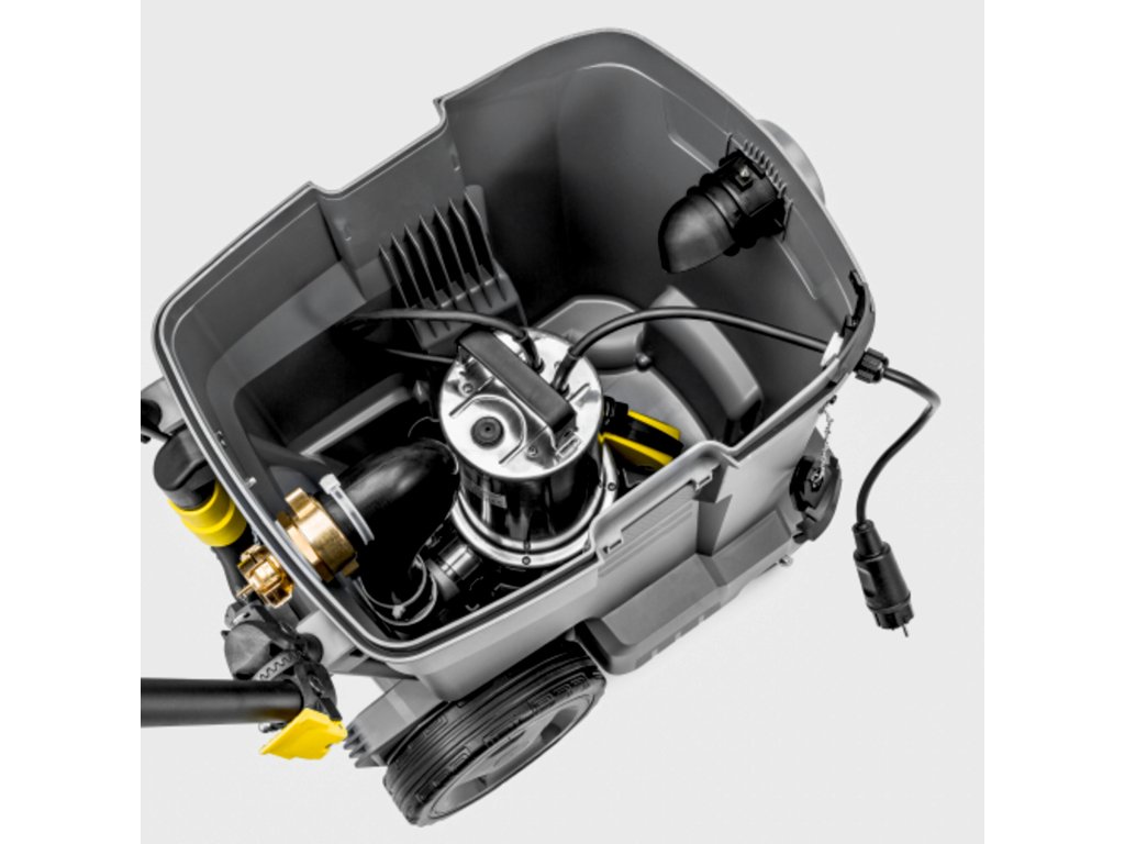 Vysavač na mokro-suché vysávání NT 50/1 K je speciálně navržen pro rychlé odstraňování velkého množství vody, ať už na staveništích nebo v průmyslových provozech. Díky výkonnému výtlačnému čerpadlu zvládne více než 300 litrů znečištěné vody za minutu, včetně hrubých nečistot o velikosti částic až 20 milimetrů. Standardní spojka Geka zajišťuje jeho kompatibilitu s tímto široce používaným spojovacím systémem pro vodní hadice. Turbína a výtlačné čerpadlo jsou chráněny proti poškození nebo ucpání účinnými filtry hrubých nečistot, které zabraňují nasátí drobných částí, kamenů, listí nebo zbytků stavebního materiálu. Kovové řídicí kolečka na robustní 50litrové nádobě a plynule nastavitelná tlačná rukojeť zajišťují vysokou přenosnost a snadnou přepravu vysavače NT 50/1 K z vozidla na místo použití a zpět.