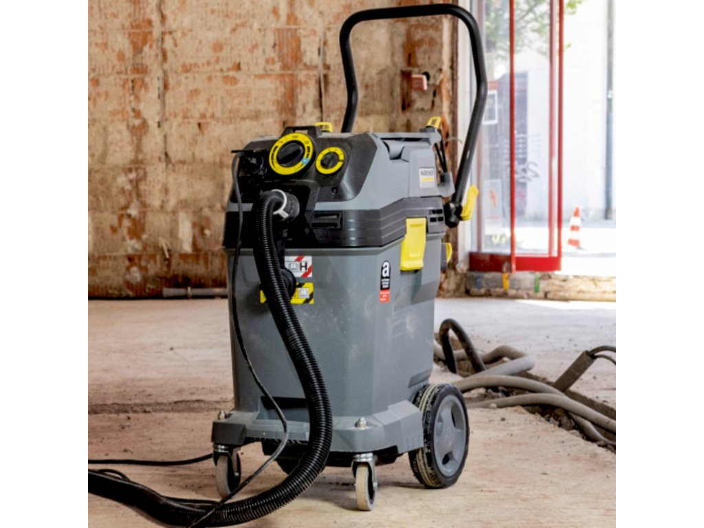 Velká 50litrová nádoba v kombinaci s nastavitelnou rukojetí a vypouštěcí hadicí dělá z NT 50/1 Tact Te H ACD ideální řešení pro bezpečné odstranění nebezpečného a karcinogenního prachu – zejména v průmyslovém prostředí. Stroj je testován a schválen pro veškerý prach třídy H – včetně azbestového prachu – a spolehlivě tak chrání uživatele i životní prostředí. Je také certifikován podle normy IEC 60335-2-69:2021 v souladu s normou ACD pro vysávání hořlavých prachů. Díky čistitelnému plochému skládanému filtru Safety/HEPA lze nebezpečný prach bezpečně zachytit v bezpečnostním filtračním sáčku nebo v PE sáčku na odpad; zatímco velké množství méně nebezpečného prachu lze vysát přímo do nádoby. Senzoricky řízený systém čištění filtru Tact zajišťuje konzistentně vysoký sací výkon tím, že udržuje filtr vždy čistý. Integrovaná zásuvka s automatickým spuštěním a kompletní antistatický systém s vodivým příslušenstvím doplňují profesionální příslušenství stroje.
