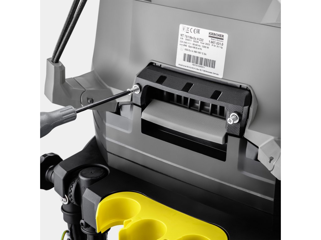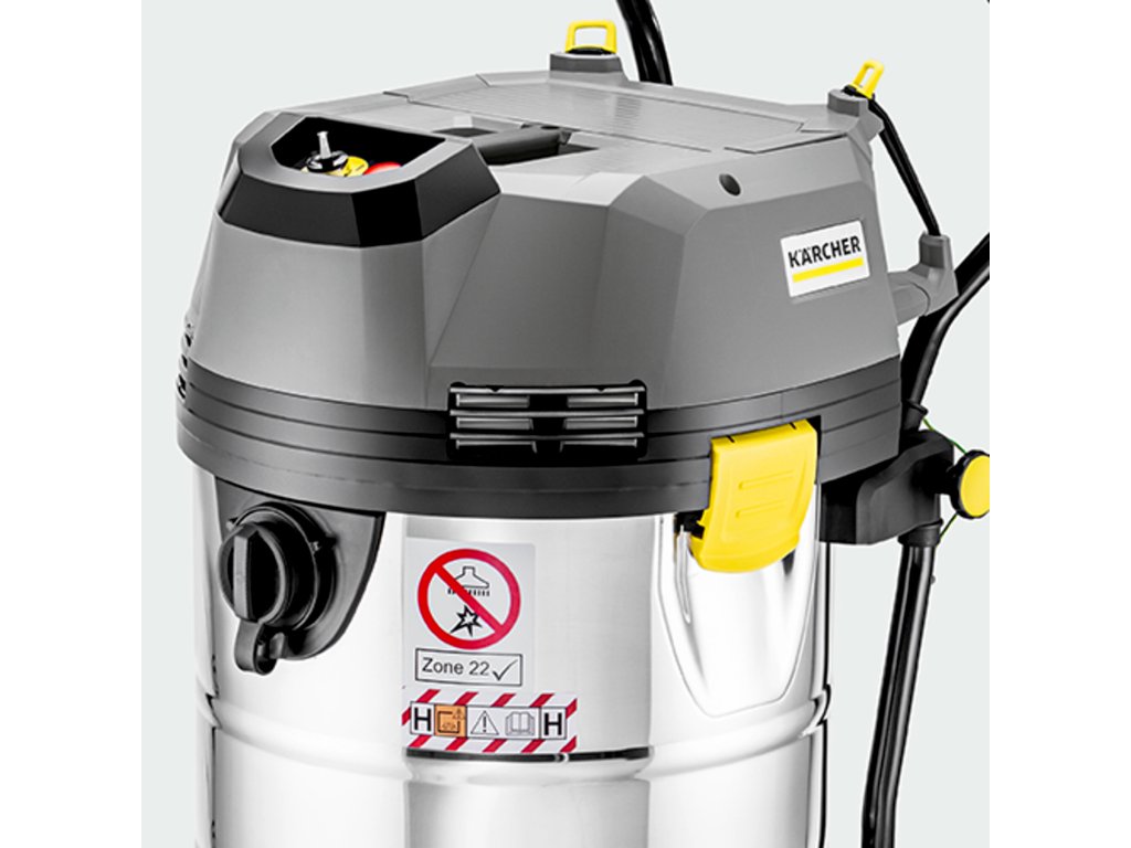 Bezpečnostní vysavač NT 75/1 Me Ec H Z22 je certifikován v souladu se závaznou směrnicí EU ATEX 2014/34/EU nezávislým a renomovaným zkušebním institutem IBExU pro odstraňování hořlavých a jiných prachů třídy H ve výbušných oblastech zóny 22. Výkonný bezuhlíkový EC motor zaručuje životnost 5000 hodin. Vysavač pro mokré a suché vysávání v nevýbušném provedení má plně uzemněnou konstrukci a odpovídající elektricky vodivé příslušenství zabraňuje elektrostatickému výboji. Díky 75litrové nádobě z nerezové oceli a robustnímu podvozku s nastavitelnou tlakovou rukojetí lze z nebezpečné zóny snadno odstranit velké množství prachu, hrubých nečistot nebo kapalin. Sada bezpečnostních filtrů zajišťuje bezpečnou likvidaci vysátého materiálu. Součástí dodávky NT 75/1 Me Ec H Z22 je: bezpečnostní plochý skládaný filtr pro prachovou třídu H, který je díky speciálnímu PTFE povlaku obzvláště odolný a má dlouhou životnost a navíc zaručuje schopnost zadržet 99,995 % prachu.