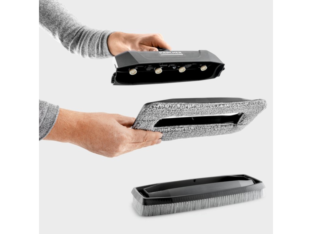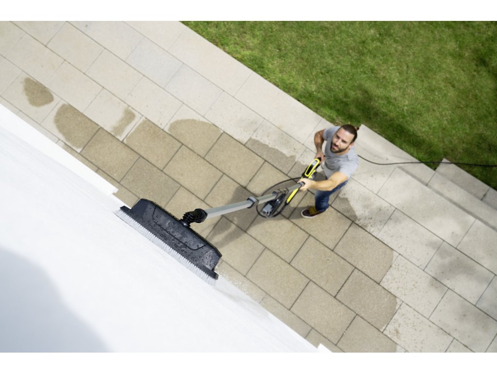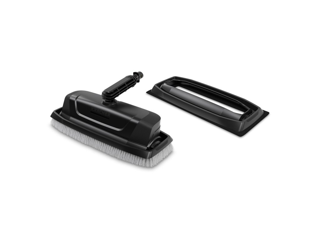 Rovnoměrné a vysoce účinné čištění. V závislosti na aplikaci lze vyměnitelný rám snadno a rychle vyměnit. Rám se štětinami pro čištění fasád a stěn chrání uživatele před stříkající vodou a lze jej také jemně pohybovat po povrchu. Pro čištění skleněných povrchů, jako jsou zimní zahrady, je rám s podložkou z mikrovlákna, který je připevněn suchým zipem, perfektní. Abrazivní vlákna podporují odstraňování nečistot a zaručují jemné čištění povrchů.