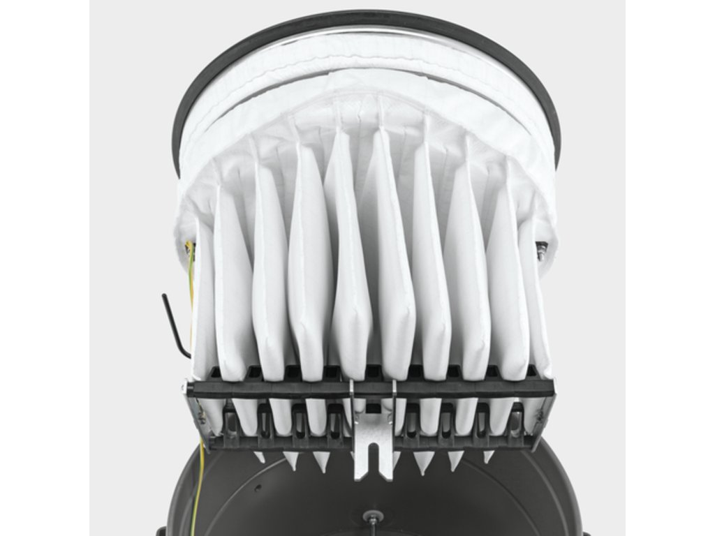 Delší životnost, méně náročná údržba a menší náklady. Ideální pro průmyslové použití. Bezkonkurenčně účinné manuální očištění filtru skrze výztužnou mřížku v každé filtrační kapse.