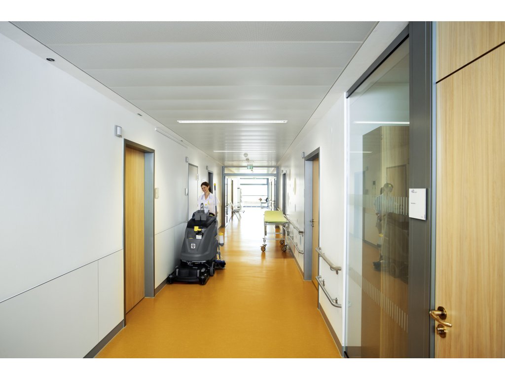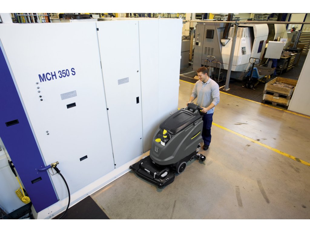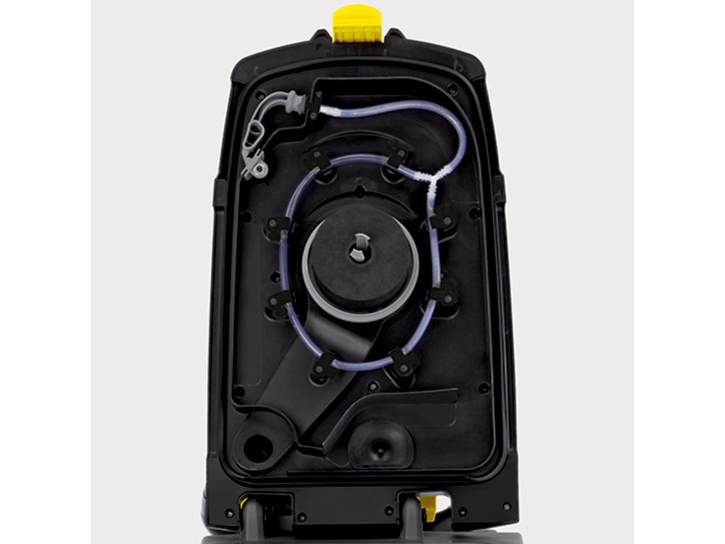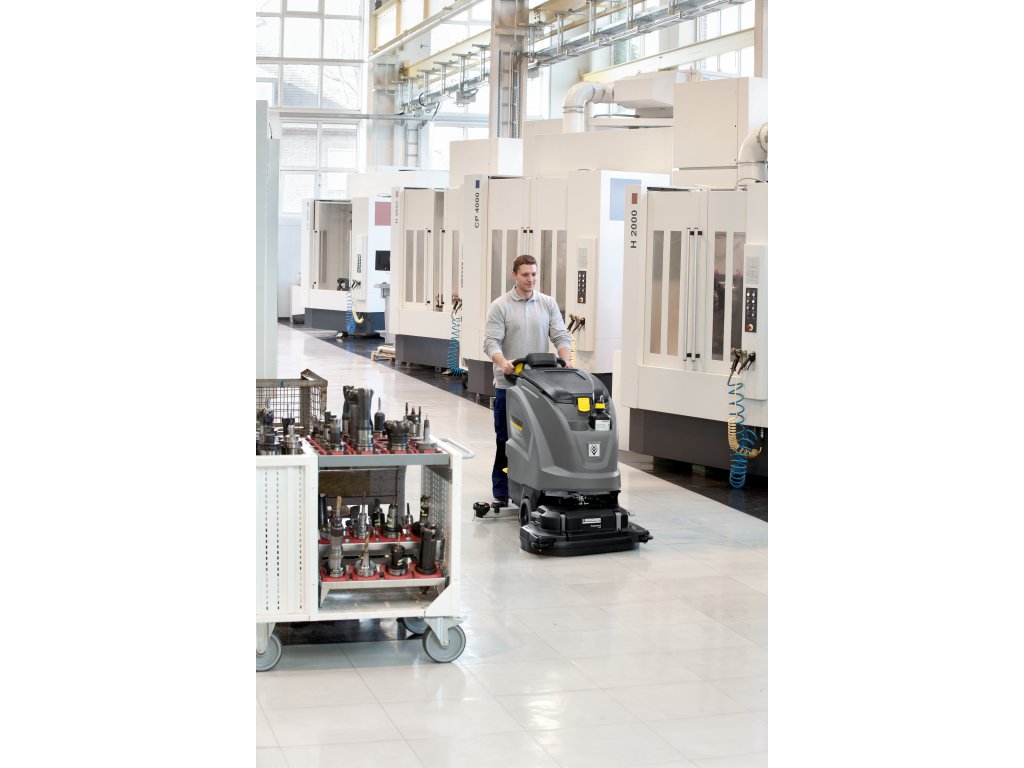 Ručně vedený podlahový mycí stroj s odsáváním B 60 W Bp s pohonem, systémem klíčů KIK a vyplachováním nádrže nabízí komfort i snadnou a bezpečnou manipulaci. Systémem klíčů KIK jsou udělována přístupová práva k zamezení chybných kroků obsluhy. Kartáčová hlava s kotoučovou technikou D 65 (pracovní šířka 65 cm) a počet otáček až 180 ot./min předurčuje stroj pro čištění nestrukturovaných podlah s plošným výkonem až 2.500 m². Přítlak kotouče je nastavitelný, přičemž hlavu i kotouč rychle namontujete i vyměníte. Stupeň eco!efficiency zásadně prodlouží dobu chodu baterie a systém vyplachování nádrže zjednoduší čištění nádrže na špinavou vodu po vyčištění podlahy. To vše završuje funkce Auto Fill pro jednoduché a časově nenáročné plnění nádrže na čistou vodu. Navíc se sací lišta tvaru V o pracovní šířce 900 milimetrů postará o odsávání nečistot beze zbytků i při jízdách v zatáčkách.
