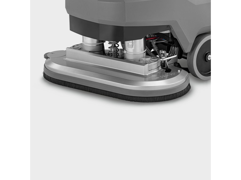 Výkonný pohon pojezdu, který pomůže bez námahy překonat i stoupání, je jedným z nejvýraznějších znaků našeho ručně vedeného podlahového mycího stroje s odsáváním BD 80/100 W Bp Classic. Ručně vedený bateriový stroj je optimálně připravený pro každodenní, i náročnější pracovní úkoly. Například jsou silně namáhané komponenty, jako sací lišty a hlava s kotoučovým kartáčem vyrobeny z masivní litiny z hliníku a odolají tak i vysoké zátěži. Velmi komfortní pro uživatele jsou osvědčený koncept obsluhy s listovou pružinou umístěnou na zadní straně rukojeti, která umožňuje jednoduché zvýšení přítlaku kartáče ze 40 na 68 kilogramů v případě zvlášť odolných nečistot nebo k odstraňování vrstev a plynule nastavitelnou rychlost přepravy a čištění až do 5 km/h. Velká pracovní šířka 80 centimetrů a nádrž o objemu 100 litrů umožňují dlouhé a efektivní intervaly čištění a plošné výkony až 4800 m² za hodinu. Celý promyšlený koncept doplňuje adaptér Home Base, který umožňuje uložení vybavení k manuálnímu čištění , což přispívá k ještě vyšší efektivitě a výrazně zvyšuje komfort pro uživatele.