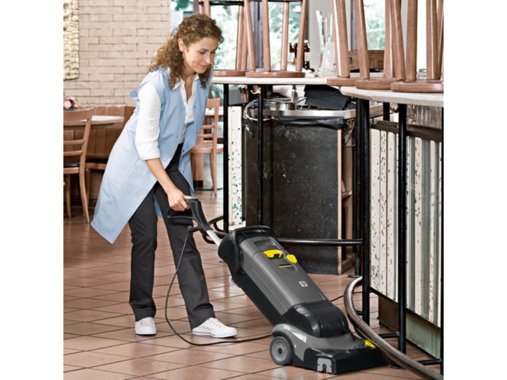 Inovativní a kompaktní podlahový mycí stroj BR 30/4 C Adv zajistí perfektní umytí podlahy bez zbytečné námahy. Váží pouze 12 kg a je snadno ovladatelný. Díky rychlosti válce 1500 otáček zajistí výrazně lepší výsledky čištění. Může odsávat při jízdě dopředu i dozadu. Je vhodný k čištění ploch od 20 do 200 m². Ideální využití najde při čištění menších obchodů, restaurací, čerpacích stanic, supermarketů, sanitárních oblastí nebo gastronomické části hotelu. Podlaha zůstává po vyčištění ihned suchá, čímž se zabrání případnému uklouznutí. Stroj je vybaven ručním odsáváním pro nepřístupná místa. U silně ulpívajících nečistot je možné nadzvednout sací lišty, címž se zajistí delší působení čisticího roztoku.