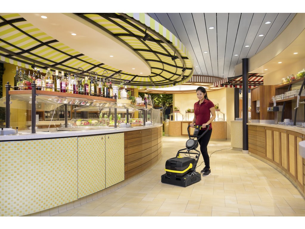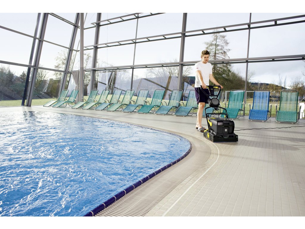 Dva vysokorychlostní rotační válcové kartáče s vysokým přítlakem. Dvě sací lišty nasávají vodu zpět – ať už se stroj pohybuje dopředu nebo dozadu Po podlaze je možné ihned znovu chodit.