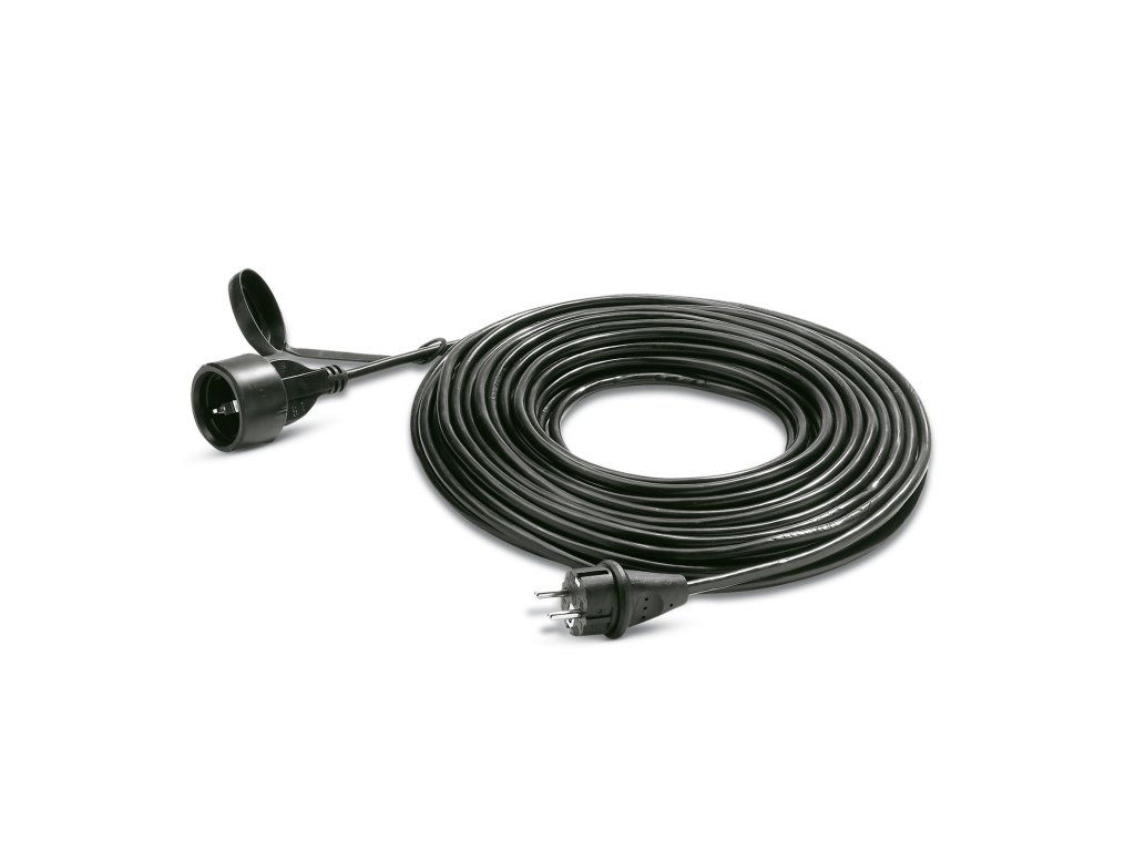 Prodlužovací kabel, délka 20 m, 3x1,5 mm². S uzemněnou vidlicí chráněnou proti ostřikující vodě, odlehčení v tahu a ochrana proti zalomení.
