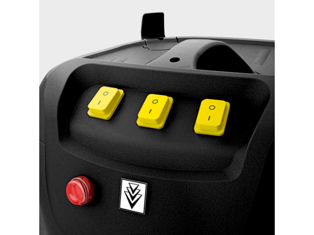 Pro velké množství vysátého materiálu, odolný, robustní, kompaktní a mobilní: Náš třímotorový průmyslový vysavač střední třídy IVM 100/36-3 pro univerzální pohlcování jemných i hrubých pevných látek v průmyslovém prostředí. Spolehlivý stroj pracuje v jednofázovém provozu a každý ze tří motorů lze samostatně ovládat. Velký hvězdicový filtr prachové třídy M lze snadno, pohodlně a spolehlivě vyčistit pomocí páky šejkru. Čištění filtru prodlužuje jeho životnost a snižuje tak náročnost údržby. Tělo a sběrná nádoba stroje jsou vyrobeny z nerezové oceli odolné proti kyselinám, zatímco kryt je vyroben z odolné oceli a má velká kola pro snadnou přepravu.
