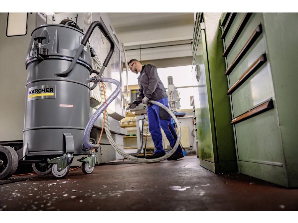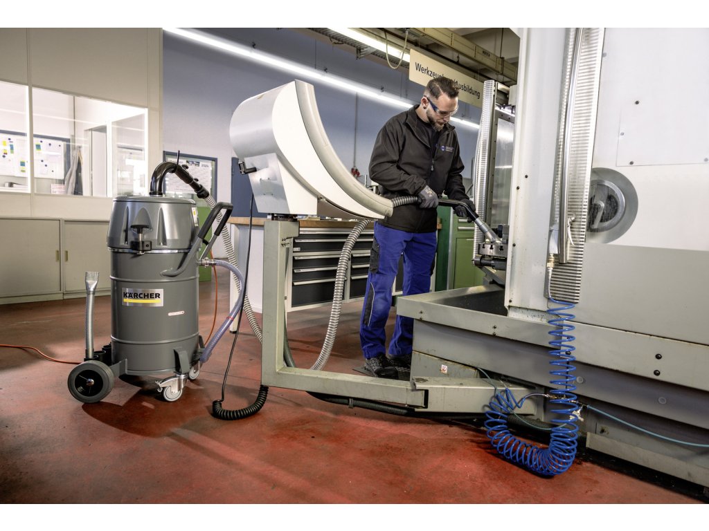 S výkonem motoru 1,2 kW je IVR-L 65/12-1 základním strojem pro vysávání kapalin a/nebo třísek. IVR-L 65/12-1 je nejmenší vysavač kapalin v řadě IVR-L. Vysoce kvalitní vysavač je ideální pro vysávání a separaci malého množství kapalin a pevných látek. Například chladicí kapalina, mazivo, voda nebo olej s kovovými pilinami. Třísky lze sbírat do koše na třísky. Kapalina, která je vysátá, je přiváděna zpět do okruhu přes vypouštěcí hadici. Na vypouštěcí hadici je vždy jasně vidět stav naplnění. Hadicová přípojka otočná o 360° na sací hlavě umožňuje snadné vysávání ve všech směrech, aniž by se sací hadice zamotala. Integrované mechanické vypínání dle hladiny náplně chrání vysavač před přeplněním. Hnací hlava je částečně vyrobena z recyklovaného materiálu.