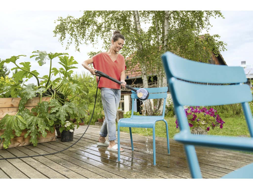 Připojení na zahradní hadici, lze použít bez tlakové myčky.