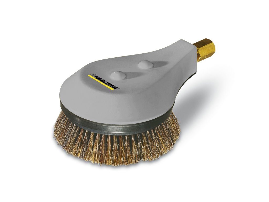 Poháněné proudem vody. Šetrně odstraňuje jemný prach a šedý film ze všech povrchů. Odolný teplotám do 80°C, M 18 x 1,5 (vyměnitelný kartáč).