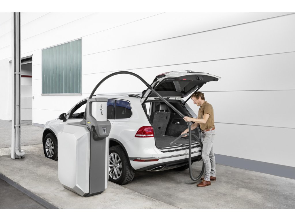 Každý proces vysávání s naším předkonfigurovaným a výkonným jednostanicovým samoobslužným vysavačem SB VC 1 začíná automatickým čištěním filtru systémem Tact. Tím je hned od počátku zajištěn konstantně vysoký sací výkon a také se prodlužuje životnost filtru a turbíny. Další vlastnosti vybavení jsou také navrženy pro dlouhou životnost SB VC 1. Například zpětné navíjení hadice se sklolaminátovou tyčí minimalizuje kontakt hadice se zemí, snižuje opotřebení a tím snižuje náklady na údržbu. Tím se také účinně zabraňuje vnikání nečistot do vozidla. Ergonomická sací hubice zajišťuje kromě vysokého sacího výkonu také optimální výsledky čištění – přímo do všech rohů a mezer. Standardem je také elektronický mincovník pro provoz s různými mincemi a žetony. Výrobek je dodáván v atraktivním standardním provedení Kärcher.