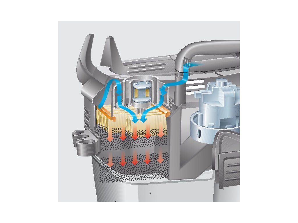 Sací výkon zůstává na konstantně vysoké úrovni. Prodlužuje životnost filtru a turbíny. Prodloužené intervaly pro čištění a výměnu filtru šetří čas a náklady.