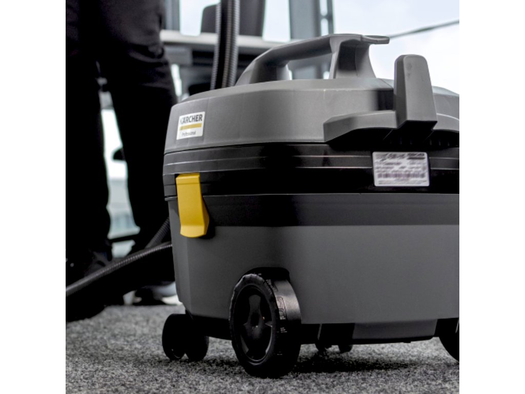 Spolehlivý vysavač T 7/1 Classic o příkonu 850 W vyvine podtlak 23,5 kPa, který odstraní i odolné nečistoty. Díky nízké hlučnosti 63 dB(A) přístroj oceníte například v hotelích či restauracích, ale také v domácnosti. Dlouhý 7,5m přívodní kabel a 2m hadice umožňují vysát ve více místnostech na jeden zátah. Hmotnost pouhých 3,5 kg, praktické madlo a čtveřice koleček usnadňují přesun stroje. Nečistoty se hromadí v robustní 7,5l nádobě s nárazníkem, který chrání váš nábytek před poškozením. Dokonalou čistotu zajišťuje omyvatelný filtrační koš, který umožňuje vysávání s filtračním sáčkem, ale i bez něj. Jeden vliesový filtrační sáček dodáváme přímo v balení s vysavačem, takže se po vybalení můžete ihned pustit do úklidu.