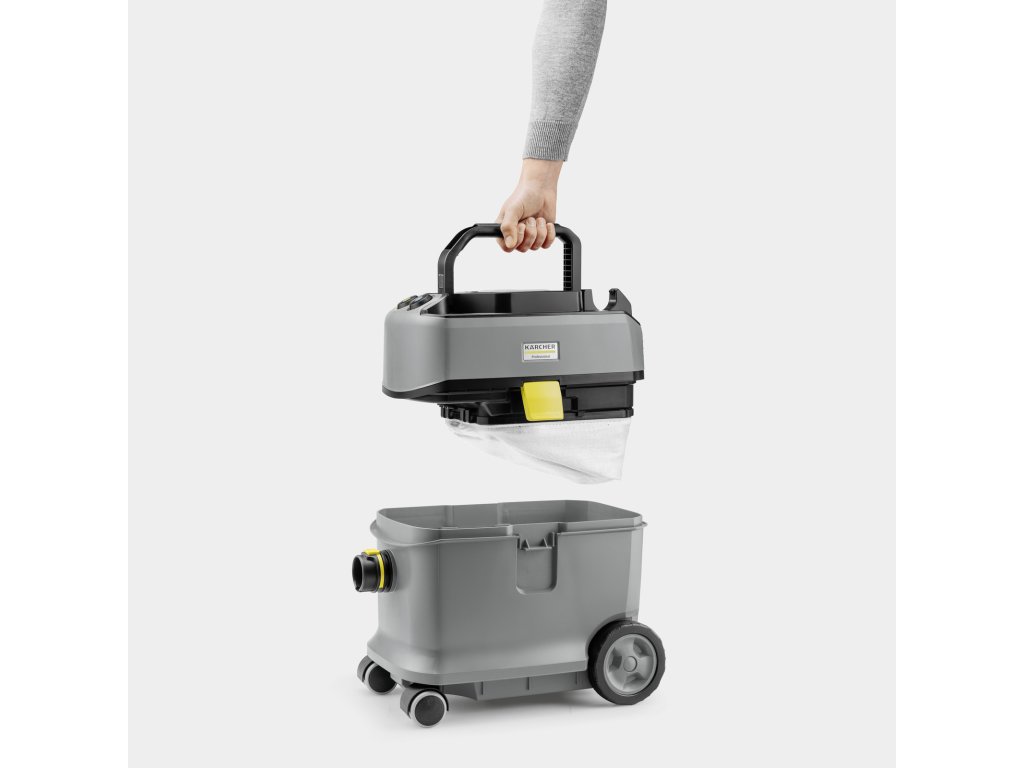 Robustní bateriový vysavač na suché vysávání T 15/1 Bp Adv HEPA odolný proti překlopení zaujme vynikajícím sacím výkonem, udržitelností a prvotřídním poměrem ceny a výkonu. Díky filtru HEPA 14 splňuje nejvyšší bezpečnostní standardy i v hygienicky citlivých oblastech a výkonné baterie Kärcher Battery Power+ (36 V) zaručují vynikající výsledky čištění. S hlučností pouhých 57 dB(A) je vysavač relativně tichý, takže jej lze použít i v oblastech citlivých na hluk i např. v domácnosti. Zdroje jsou ušetřeny díky obsahu 45 procent recyklovaného materiálu (všechny plastové díly kromě příslušenství). T 15/1 Bp Adv HEPA má objem zásobníku 15 litrů a je kompaktní a ovladatelný. Umožňuje ergonomické přepravu blízko těla a je vybavena sklopnu rukojetí. Dodanou štěrbinovou hubici a hubici na čalounění lze uložit přímo na vysavač pro snadný přístup. Součástí dodávky je mnoho příslušenství: sací hadice, antistatické koleno, lehká a teleskopická sací trubice (hliník), přepínatelná podlahová hubice, parketová hubice, HEPA 14 filtr. Baterii a rychlonabíječku je nutné objednat samostatně.