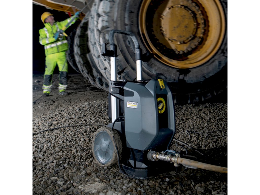 Vysokotlaký čistič bez ohřevu HD 10/25-4 S umožňuje ergonomickou práci na nejvyšší úrovni. S komfortní pistolí EASY!Force Advanced, která využívá zpětný ráz vysokotlakého paprsku ke snížení potřebné síly pro stisk rukojeti na nulu, můžete pracovat bez námahy. Rotační pracovní nástavec z ušlechtilé oceli o délce 1050 milimetrů představuje důležitou podporu. Díky funkci Servo Control nastavíte tlak a množství vody přímo mezi pistolí a pracovním nástavcem. Asistenční systémy a LED kontrolka podstatně snižují náročnost obsluhy stroje. Ty nejlepší materiály garantují nejvyšší kvalitu – typický Kärcher. Uvnitř stroje pracuje robustní axiální čerpadlo s písty z ušlechtilé oceli a mosaznou hlavou, přičemž o pohon vysokotlaké myčky HD 10/25-4 S se stará 4-pólový pomaloběžný motor chlazený vodou/vzduchem. Integrované hliníkové rámy snižují hmotnost a tvoří lehký, ale odolný podvozek vhodný pro manipulaci jeřábem. Vzpřímená konstrukce podle upright konceptu s vertikálně instalovanou jednotkou motoru a čerpadla nabízí při práci největší možnou mobilitu. Kompaktní design doplňuje chytré uložení příslušenství v závěsné tašce a pomocí nastavitelných háčků.