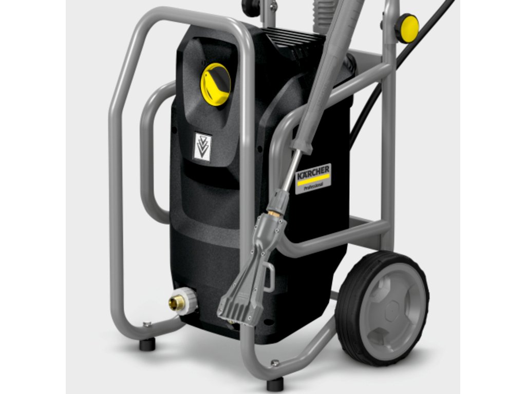 Ať už při vertikálním nebo horizontálním použití: Limitovaná edice vysokotlakého čističe HD 6/15 M Cage si poradí s každou situací v náročném každodenním komerčním použití. Mobilní, velmi robustní a 3fázově poháněný stroj je vybaven novým 3pístovým axiálním čerpadlem s mosaznou hlavou válců, které umožňuje až o 20 procent zlepšení čisticího výkonu a energetické účinnosti. Pro ochranu všech vysokotlakých komponentů je integrováno automatické přetlakové zařízení a pro samotné čerpadlo je instalován přídavný vodní filtr. Konstrukce HD 6/15 M Cage je navržena tak, aby byla údržba velmi snadná, a je vybavena rámem z ocelových rámem s práškovým nástřikem, který zajišťuje, že vysokotlaký čistič lze používat i v těch nejnáročnějších aplikacích bez poškození. Mezi další standardní vybavení patří naše inovativní vysokotlaká pistole EASY!Force, která využívá sílu zpětného rázu vysokotlakého paprsku ke snížení přídržné síly na nulu, a rychlospojky EASY!Lock, které umožňují manipulaci pětkrát rychlejší než konvenční šroubové spoje, aniž by byla ohrožena robustnost nebo životnost. Dárek v balení: Eco!Booster tryska a pracovní nástavec 600mm.