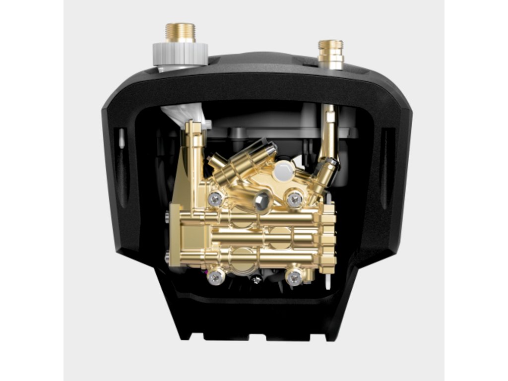 Systém automatického snížení tlaku na ochranu komponent prodlužuje jejich životnost. Výkonný, dvoupólový, vzduchem chlazený elektromotor. Kvalitní mosazná hlava válců.