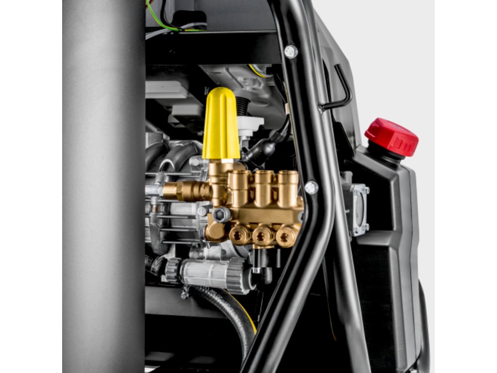 Robustní čerpadlo s klikovým hřídelem a osvědčenou kvalitou Kärcher. Osvědčená bezpečnostní technologie, jako je tepelný a bezpečnostní ventil a vodní filtr.