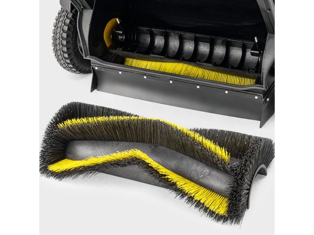 Stroj, který přemýšlí spolu s vámi a ušetří vám drahocenný čas: Náš zametací stroj s odsáváním na benzinový pohon KM 125/130 R G+KSSB je vybavený množstvím patentů a inovací, které skutečně oceníte. Zvláštní vybavení představuje postranní kartáč pro srpkové zametání, díky kterému vymetete kouty již při první jízdě a vyhnete se nepříjemné manuální práci. Teach systém naopak zcela automaticky přizpůsobí výšku hlavního zametacího válce umístěného mezi zadními koly, což vám vždy zaručí ty nejlepší výsledky zametání. Pro jejich zlepšení můžete nastavit přítlak válců ve 3 stupních podle typu podkladu a stupně znečištění. Plnou kontrolu přítlaku a opotřebení nabízí jejich kontrolka na multifunkčním displeji. Navíc se plně automatické očištění filtru Tact postará o téměř bezprašnou práci, zatímco elektrohydraulické vyprazdňování vrchem a systém Kärcher Intelligent Key ještě více zlepší pracovní komfort a bezpečnost.