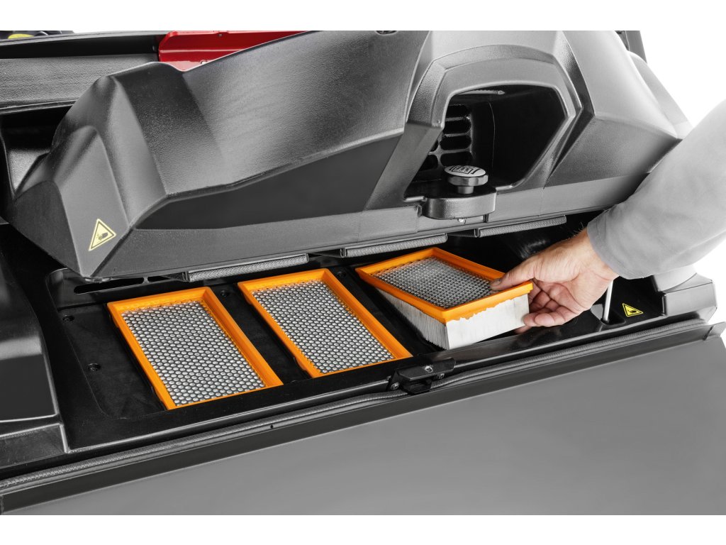 Lepší zdolávání převýšení. Pohodlný přístup k zametacímu válci, výměna zametacího válce za méně než 5 minut. Kontrola zametacího válce během několika málo sekund.