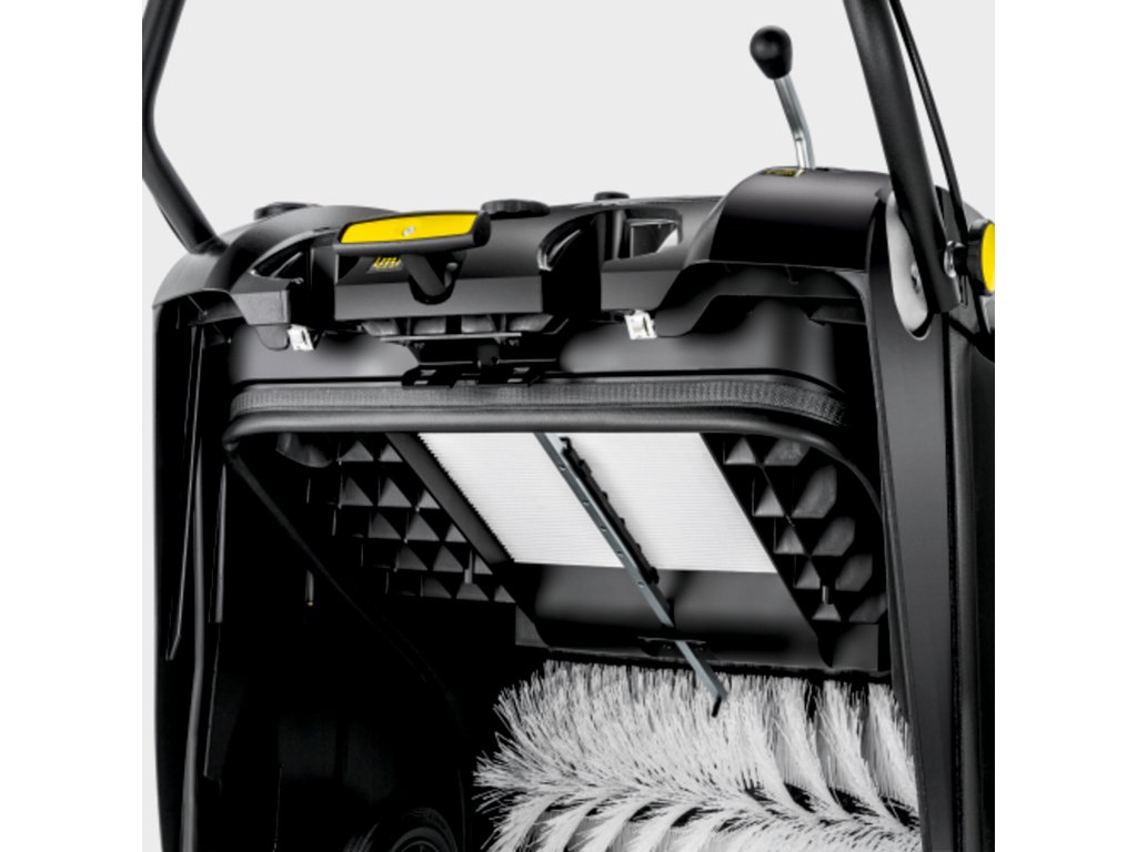 KM 75/40 W Bp, bateriově poháněný, zametací stroj s pohonem pro efektivní zachycení prachu. Další technické údaje: Pohon:> 400 W stejnosměrný motor> variabilní rychlost zametání: 0 - 4,5 km / h zametací systém:> systém svržení> výměna bočního kartáče bez použití nástrojů> zvedání / spouštění bočního kartáče> výměna hlavního kartáče a přestavování bez použití nástrojů Filtrační systém:> polyesterový skládaný filtr (plocha filtru: 1,8 m2)> efektivní mechanické čištění filtru> výměna filtru bez nářadí Nádoba na odpad:> kapacita: 40 l> nádoba s válečky, zapuštěnou rukojetí a výsuvným vozíkem grip Operation:> EASY Operation Display> výškově nastavitelná tlačná rukojeť> trakční pohon a ovládání klapek hrubých nečistot na tlačné rukojeti> pohodlné zvedání / spouštění bočního kartáče