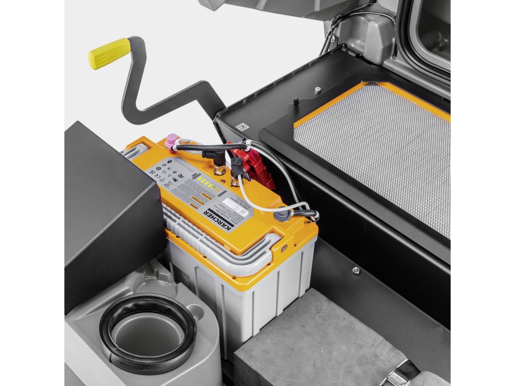 Skvěle vybavený, velmi snadno a bezpečně ovladatelný, obzvláště kompaktní konstrukce - náš zametací stroj KM 85/50 R umí zaujmout ve všech ohledech. Například výkonný lithium-iontový akumulátor s dlouhou životností a kapacitou 80 Ah a příslušná rychlonabíječka jsou již součástí výbavy stroje. Standardem jsou také: rotační boční kartáč s regulací otáček, velký prachový filtr pro bezprašnou práci a indikátor opotřebení hlavního zametacího válce, který je vidět zvenčí. Díky promyšlené kompaktní konstrukci nabízí KM 85/50 R působivou obratnost a manévrovatelnost, a proto je vhodný i pro úklid v úzkých a stísněných prostorách. Kromě toho stroj nabízí jednoduchou koncepci ovládání s praktickými detaily, jako je oscilační válec pro velmi dobré výsledky čištění i na nerovných podlahách nebo čištění prachového filtru ze sedadla. Práce na údržbě výrazně usnadňuje široce otevíratelný kryt a hlavní zametací válec lze vyměnit i bez použití nářadí. Integrovaný systém Home Base umožňuje také snadné přenášení dalšího úklidového náčiní.