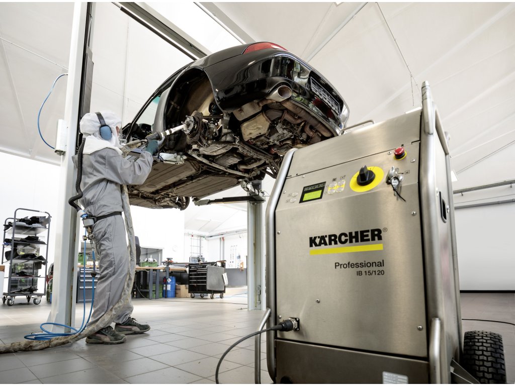 Nový otryskávací přístroj IB 15/120 se představuje výkonně, robustně a mimořádně spolehlivě. Také chytré řešení detailů jako držení kufru, vyprazdňování ledu, držící třmen a úložné přihrádky přispívají k celkovému pozitivnímu dojmu, zvyšují obslužný komfort a zpříjemňují práci. A také z technického pohledu bylo uděláno hodně. Tak se rozhodně zlepšilo proudění vzduchu v přístroji, hadici a trysce. Výsledek: výrazné zlepšení výkonu. Navzdory své velikosti je IB 15/120 velmi mobilní a může být snadno přesunut jednou osobou např. přes schod. Stručně řečeno: Otryskávání suchým ledem v nejlepší podobě!