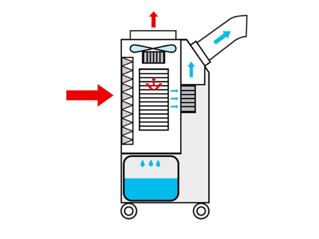 Praktické, flexibilní a rychle na místě. Vhodné pro chlazení na přesně tom správném místě, kde potřebujete. Pro zapnutí klimatizace je potřeba pouze zásuvka na 230 V. Velmi vysoký chladící výkon přístroje umožňuje široký rozsah použití: počínaje malými prostory až po velké haly, podél výrobních linek, nebo cíleně na speciální pracoviště, nebo místa pobytu.