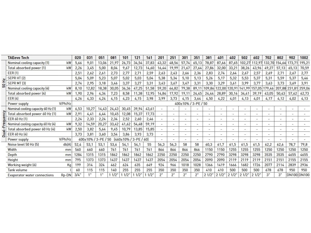 - Všechny modely TAEevo TECH již splňují limity stanovené ErP pro indexy SEPR HT (Tier 2 01.01.2021) a SEPR MT (Tier 2 02.07.2018);